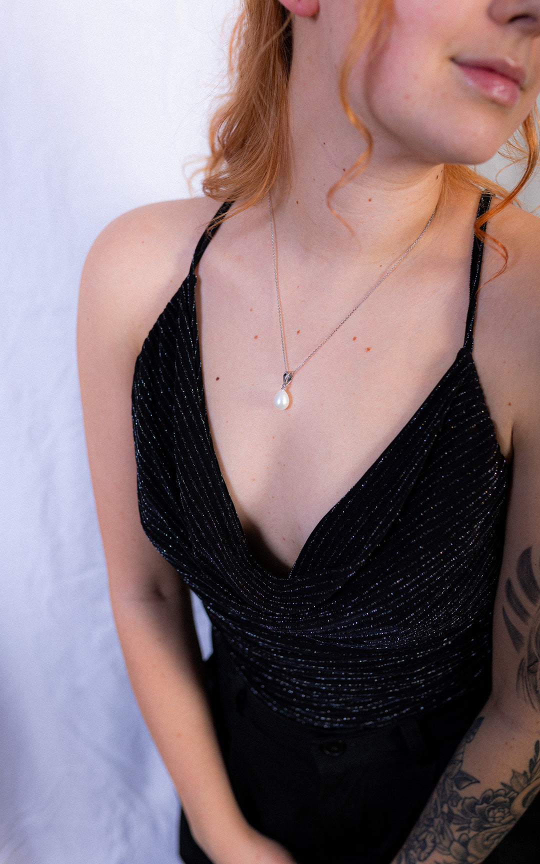 Pendentif perles blanches gouttes et chaine argent